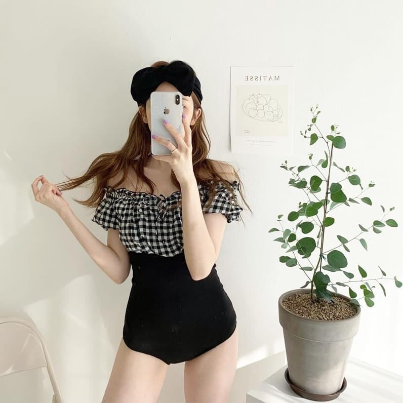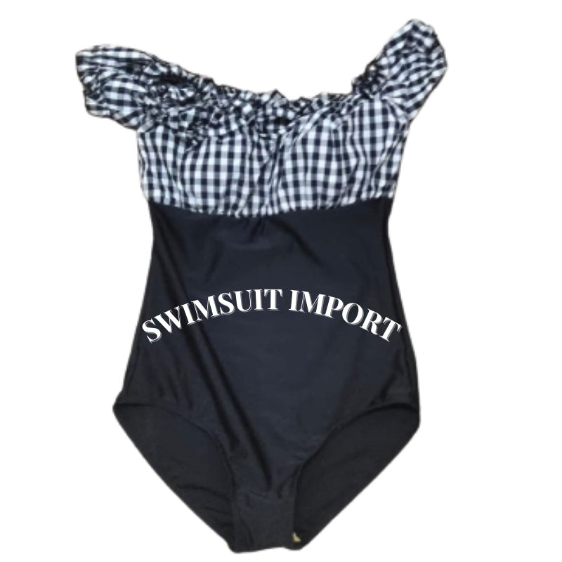 Swimsuit Motif Kotak Lengan Karet Import