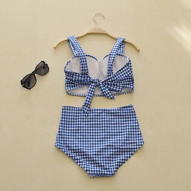 Swimsuit Set High Waist Ikatan Pita Kotak-Kotak